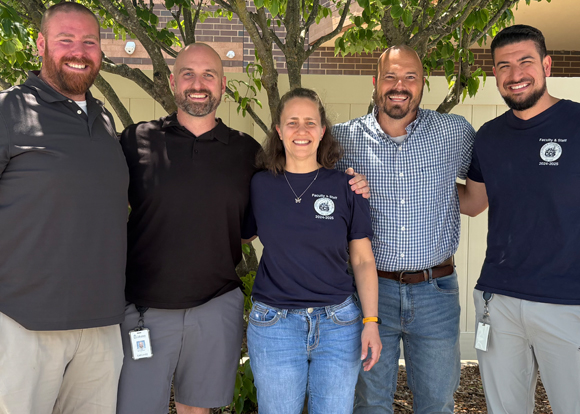 Building Administrators: (Left to Right) Justin Keller, Assistant Principal (Class of 2029); Bill Lockhart, Assistant Principal (Class of 2028); Marie Rogai, High School Principal; Charles “Chip” Harper, Assistant Principal (Class of 2027); and Christopher Castro, Dean of Climate and Culture.